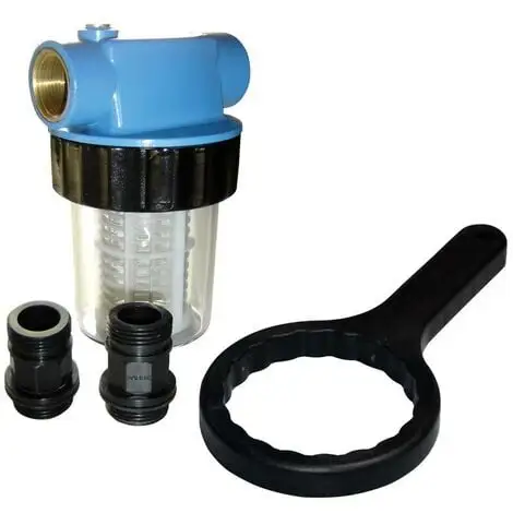 Domaine d’application : pour les pompes de jardin, le filtre de fixation est monté entre le tuyau d’aspiration et la pompe